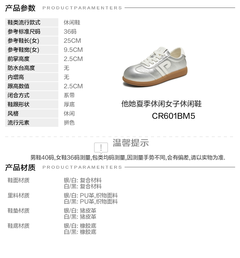 | 鞋跟形状:厚底 | 参考鞋长(女):25CM | 流行元素:拼色 | 参考鞋宽(女):9.5CM | 风格:休闲 |