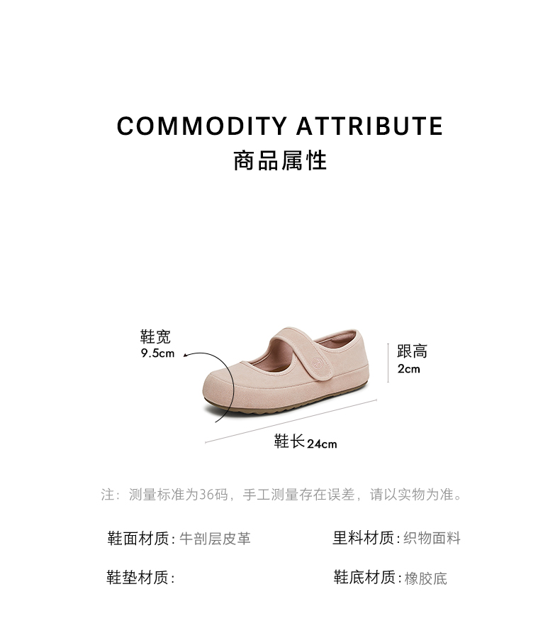 | 参考标准尺码:36码 | 跟高数值:2CM | 性别:女子 | 里料材质:织物面料 | 制鞋工艺:胶贴皮鞋 |