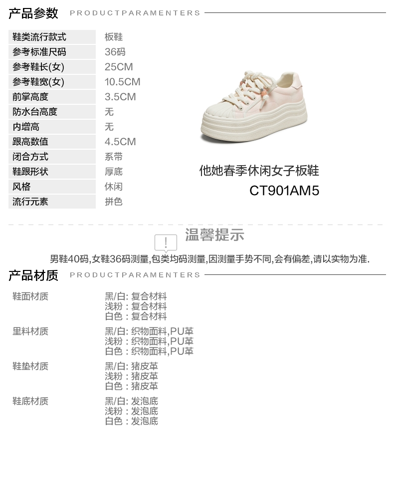 | 色系:拼色 | 参考标准尺码:36码 | 跟高数值:4.5CM | 性别:女子 | 里料材质:PU革织物面料 |