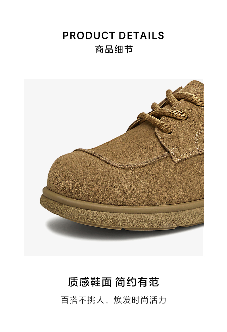 | 鞋帮:低帮 | 功能科技:无 | 鞋底材质:橡胶底 | 内增高:无 | 鞋面材质:牛剖层革 |