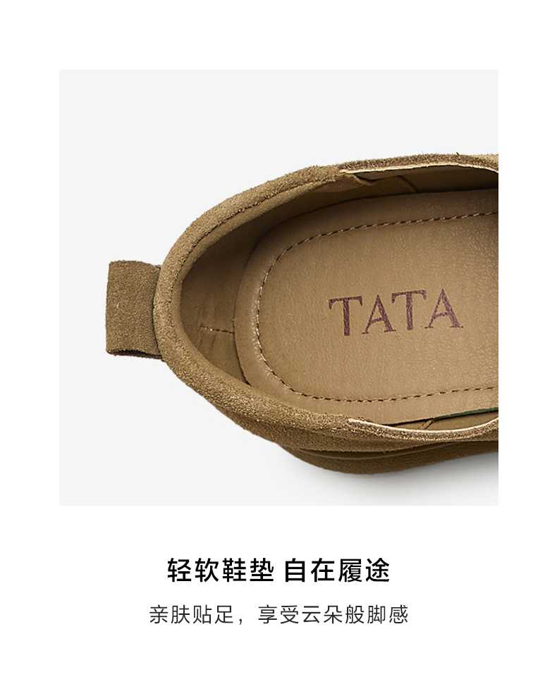 他她(Tata),品牌成立于2003年,致力为都市年轻人群提供时尚潮流、具有性价比的鞋履产品。十五年来“踏踏”的着地声,寓意都市白领元气满满的生活,如时尚“伴履”的TATA一直陪伴左右、伴随走出TATA的时尚步伐。2017年TATA美丽蜕变,TATA STAR元素的加入预示品牌将成为闪亮、前端的时尚鞋履品牌。