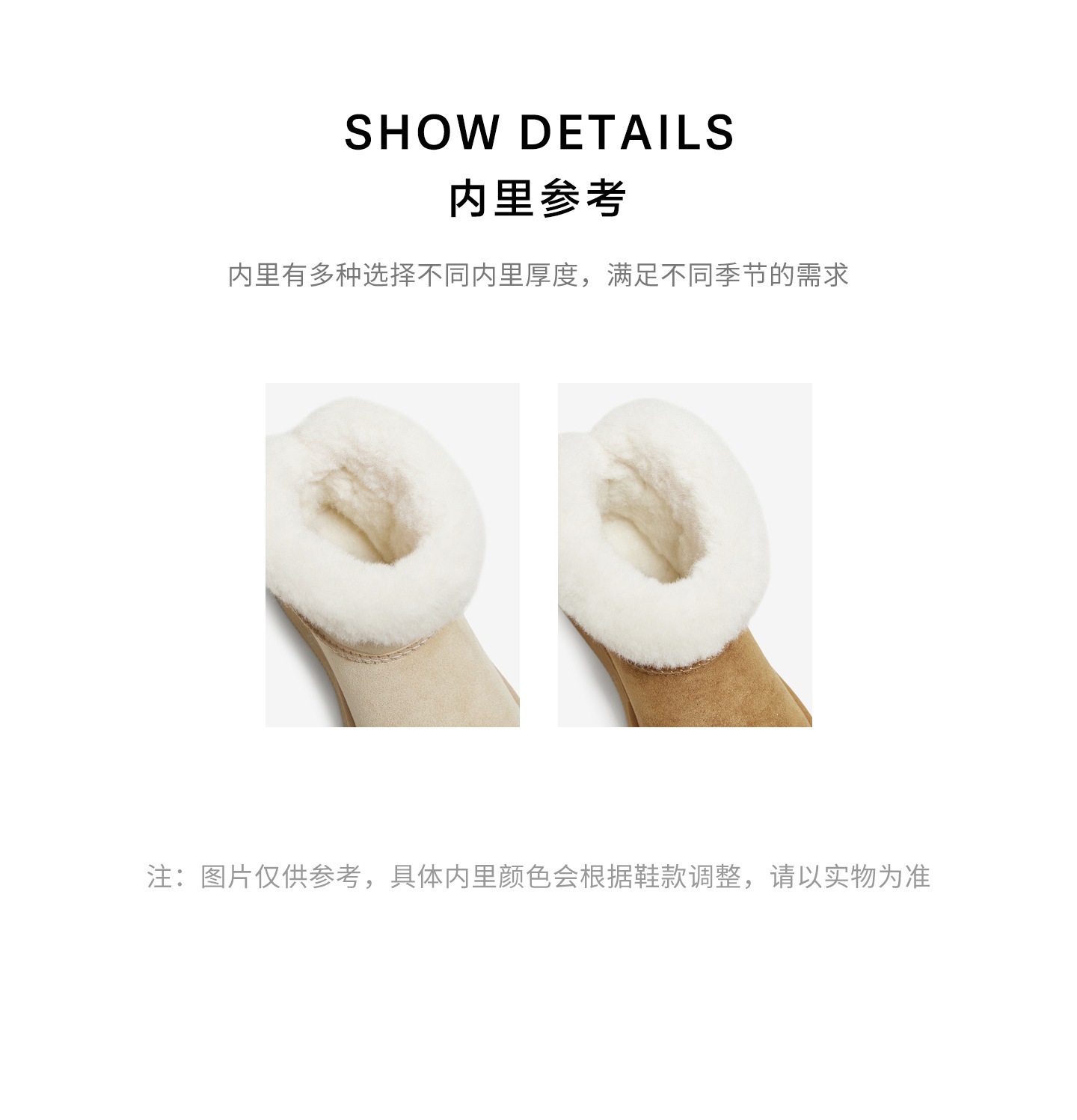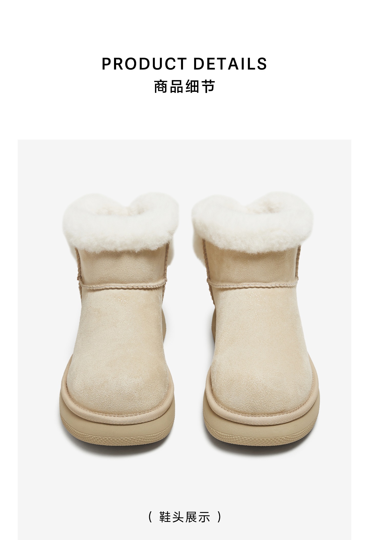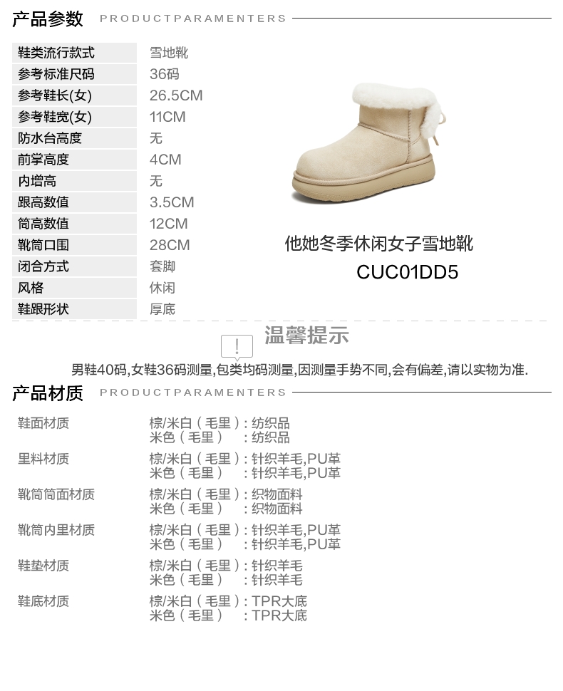 | 帮面材质:织物 | 配跟:无 | 靴筒口围:28CM | 上市时间:2025年冬季 | 鞋类流行款式:雪地靴 |