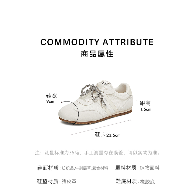 | 色系:米白 | 参考标准尺码:36码 | 跟高数值:1.5CM | 性别:女子 | 里料材质:织物面料 |