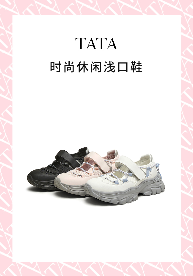 他她(Tata),品牌成立于2003年,致力为都市年轻人群提供时尚潮流、具有性价比的鞋履产品。十五年来“踏踏”的着地声,寓意都市白领元气满满的生活,如时尚“伴履”的TATA一直陪伴左右、伴随走出TATA的时尚步伐。2017年TATA美丽蜕变,TATA STAR元素的加入预示品牌将成为闪亮、前端的时尚鞋履品牌。