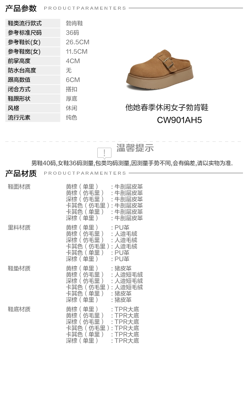 | 前掌高度:4CM | 皮质特征:软面皮 | 销售季:2025年春季 | 防水台高度:无 |