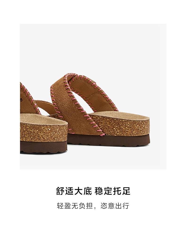 | 鞋头款式:露趾 | 鞋底材质:橡胶底 | 鞋面图案:纯色 | 鞋跟形状:厚底 | 鞋面材质:牛剖层皮革 |