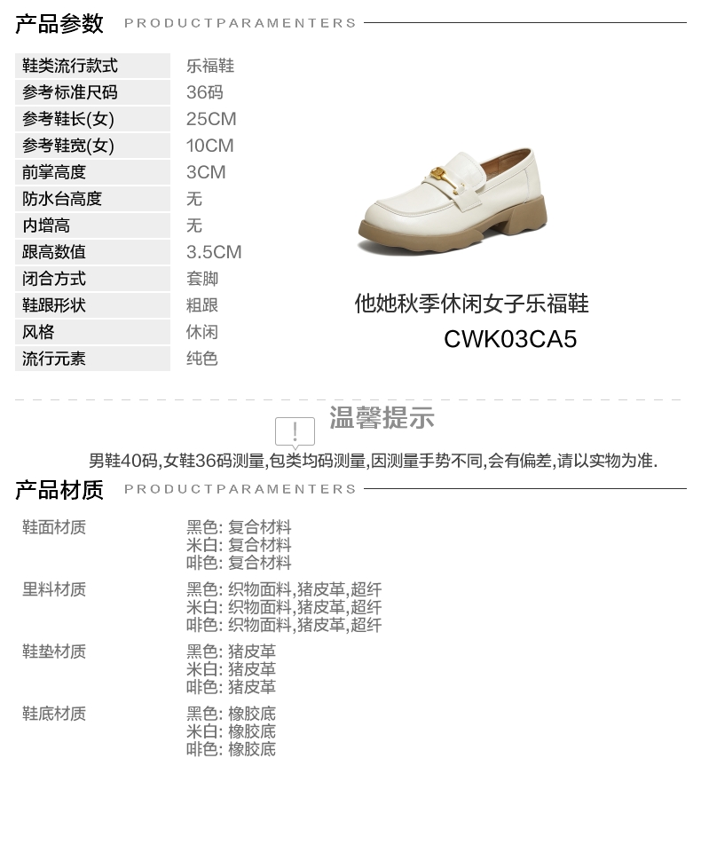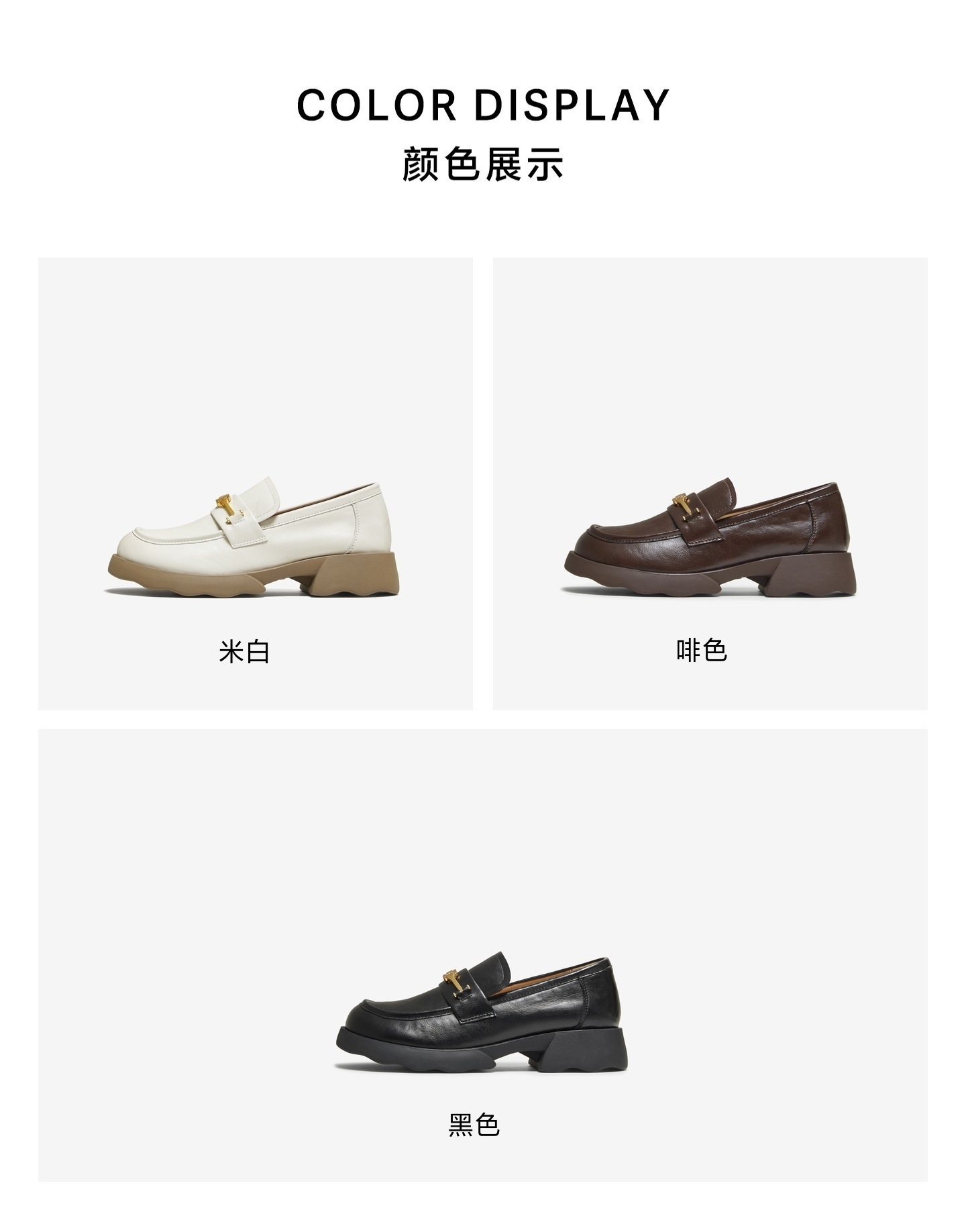 | 配跟:有 | 上市时间:2025年秋季 | 鞋类流行款式:乐福鞋 | 鞋头款式:圆头 | 鞋面图案:纯色 |