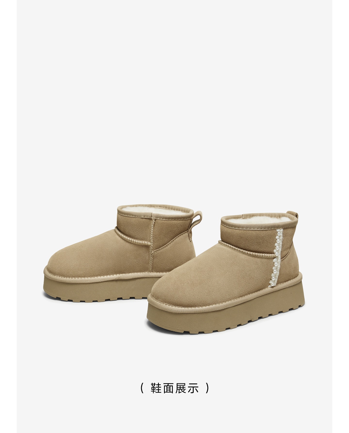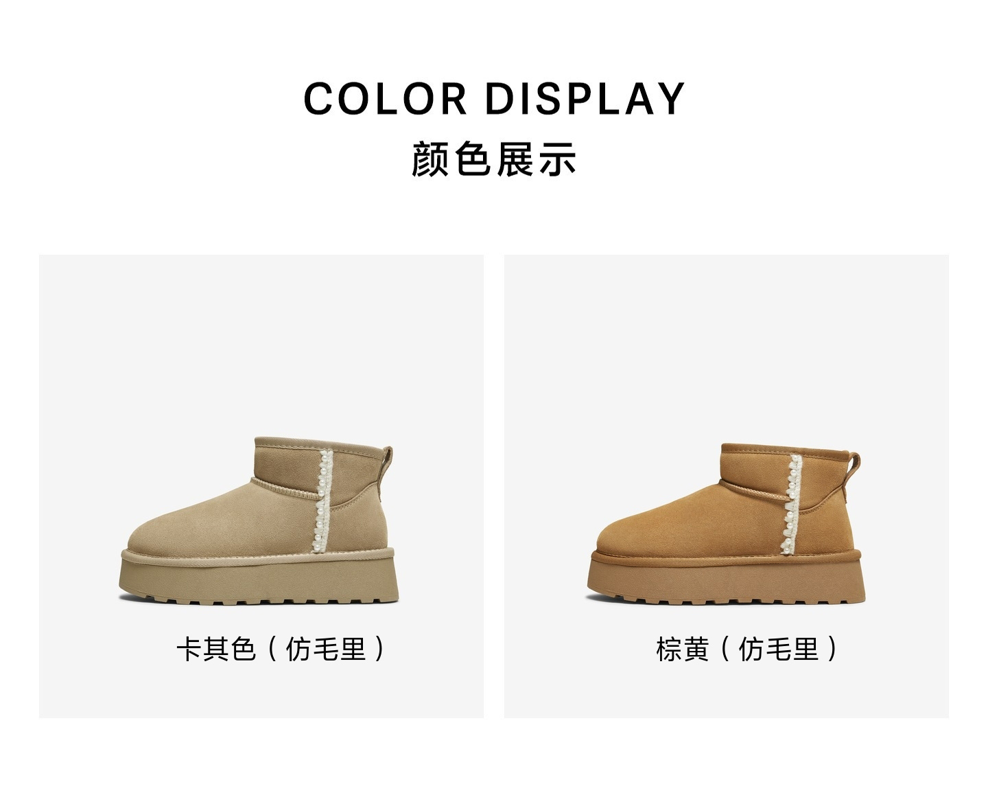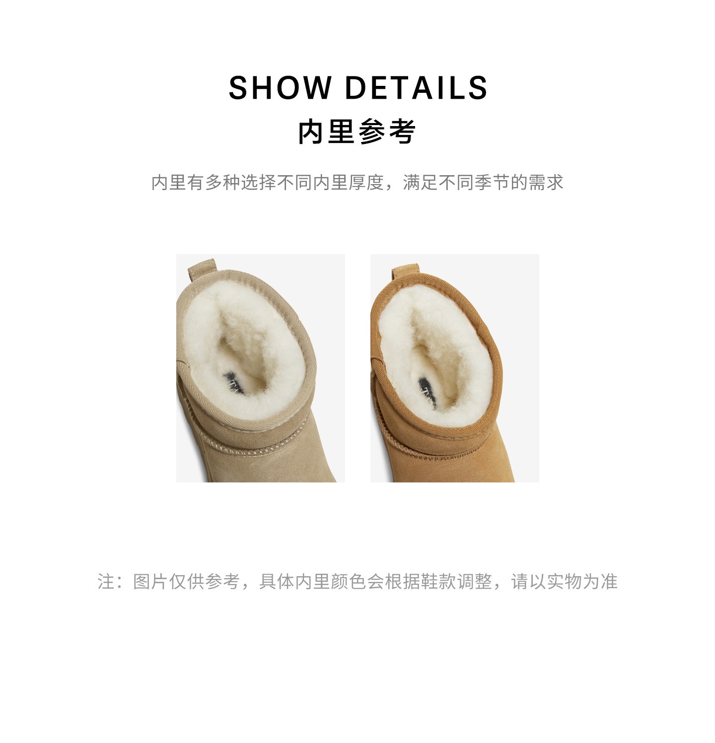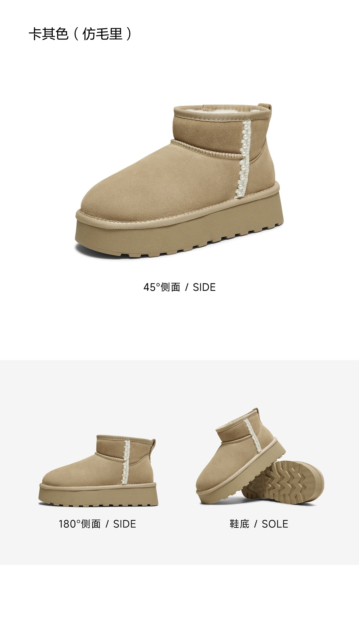 | 帮面材质:牛剖层革 | 配跟:无 | 靴筒口围:32CM | 上市时间:2025年冬季 | 鞋类流行款式:雪地靴 |
