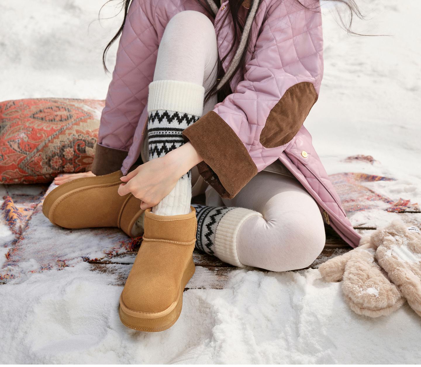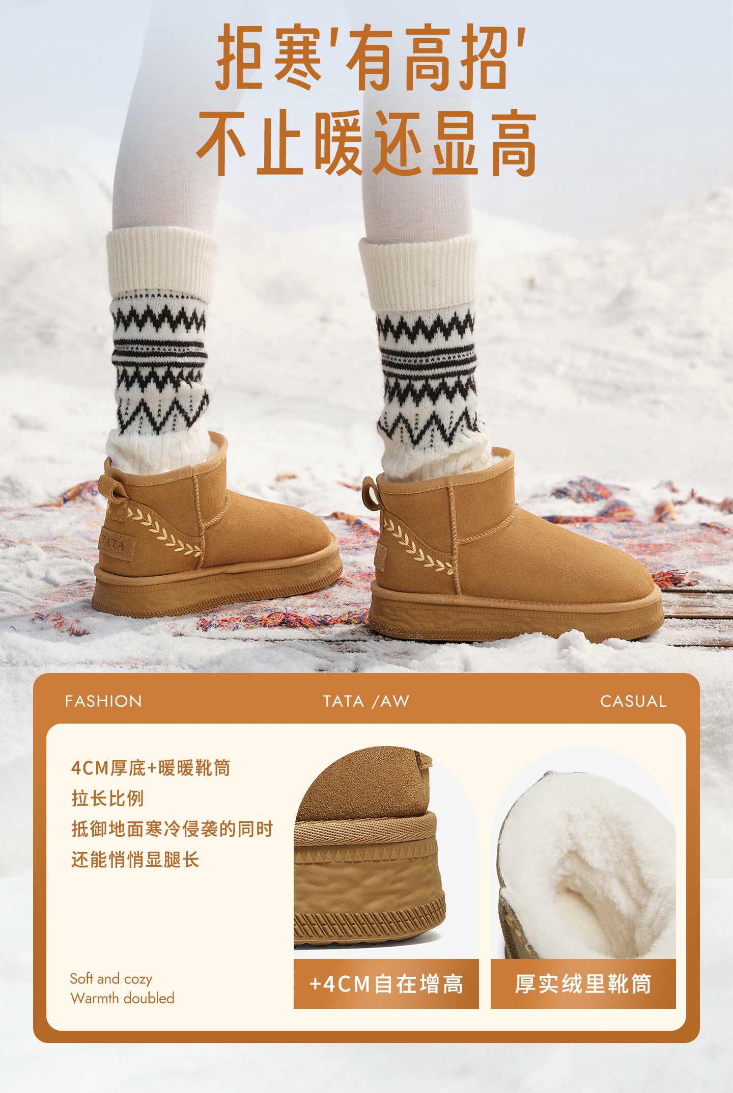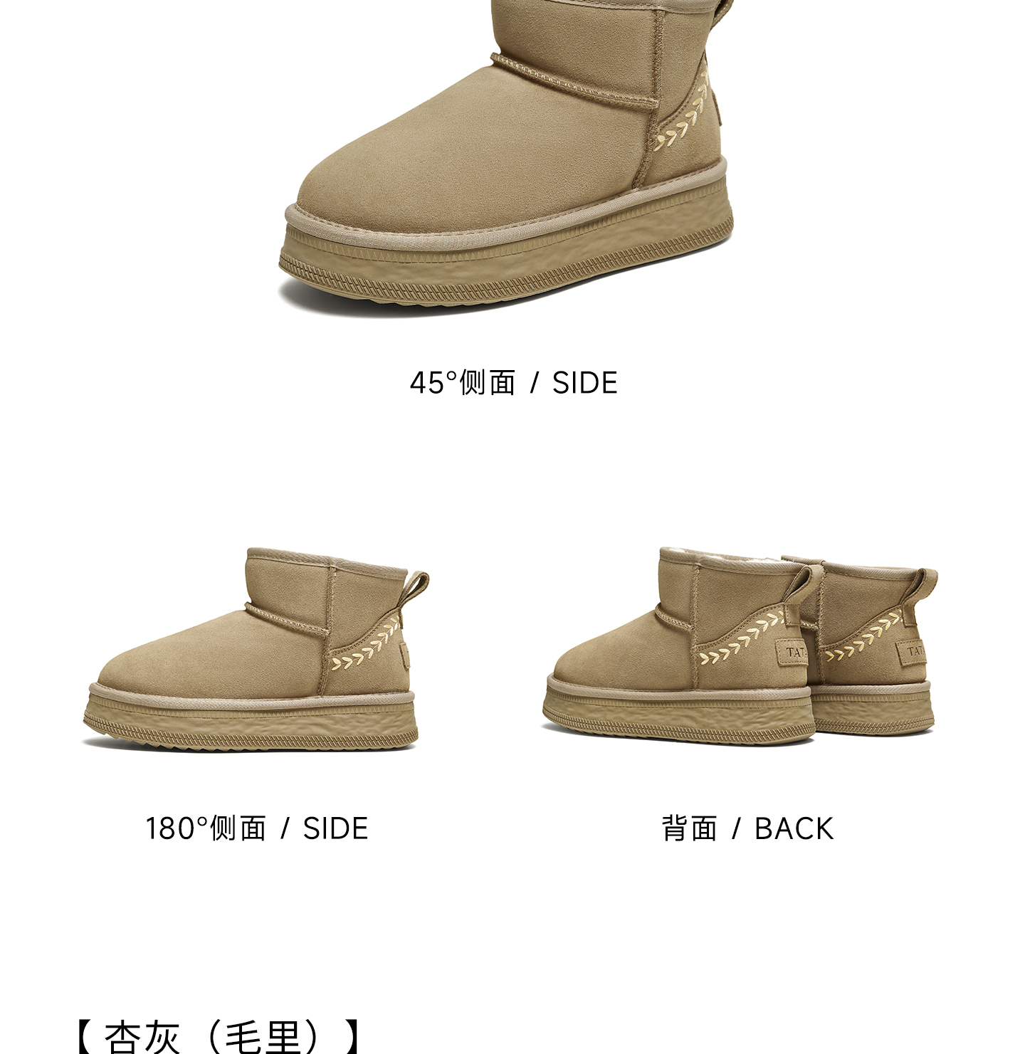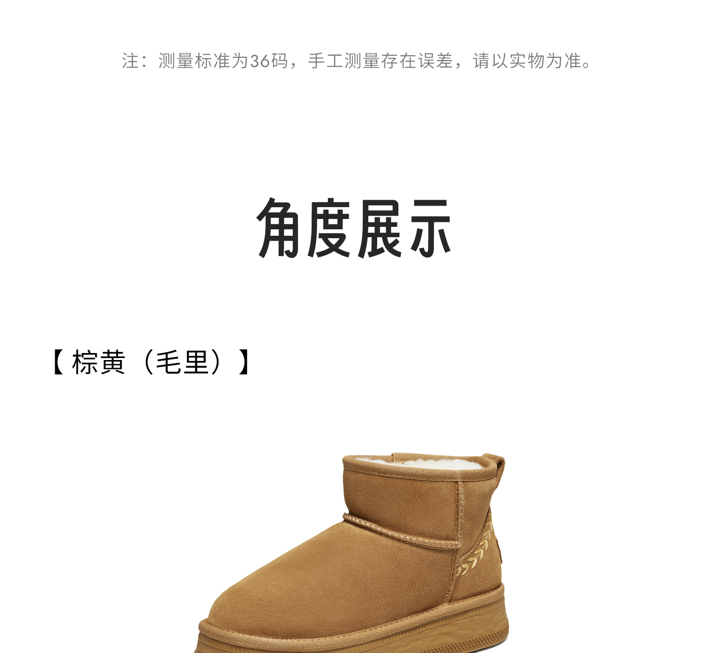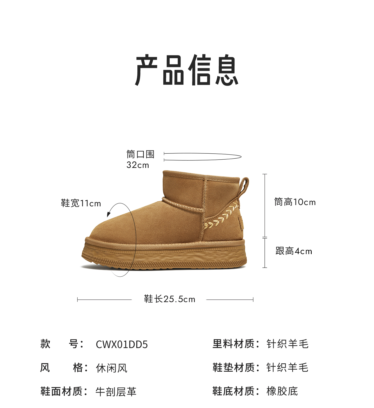 | 帮面材质:牛剖层革 | 配跟:无 | 靴筒口围:32CM | 上市时间:2025年冬季 | 鞋类流行款式:雪地靴 |