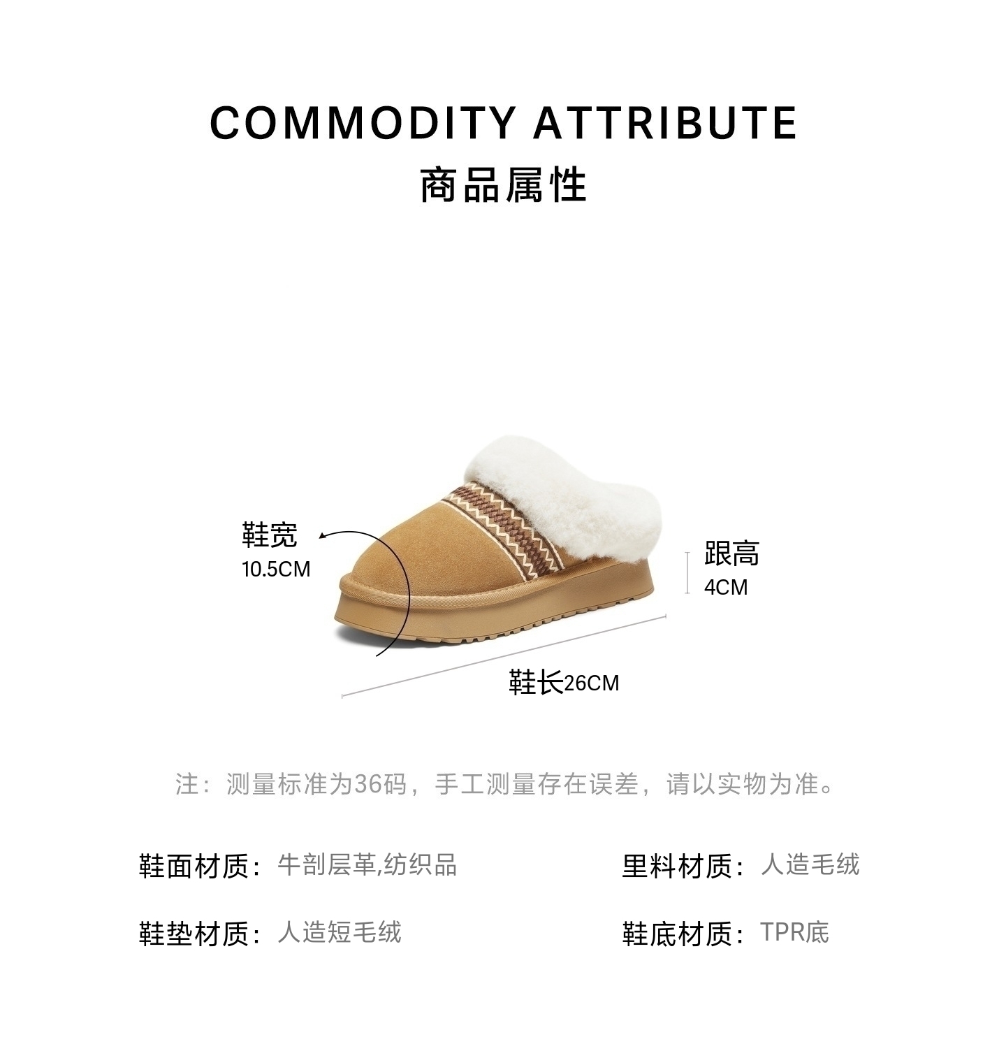 | 里料材质:人造毛绒 | 上市时间:2025年冬季 | 制鞋工艺:胶贴皮鞋 | 款式季节:冬季 | 鞋垫材质:人造短毛绒 |