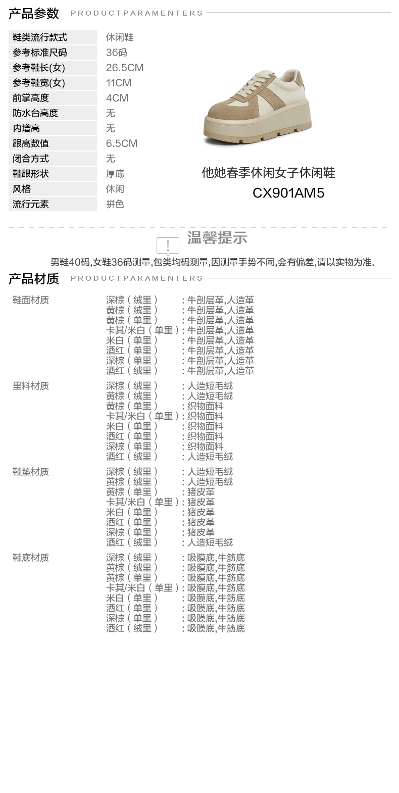 | 参考鞋长(女):26.5CM | 参考鞋宽(女):11CM | 风格:休闲 | 年份:2025年 | 色系:拼色 |