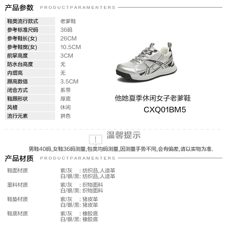流行元素:拼色 参考鞋长(女):26CM 参考鞋宽(女):10.5CM 风格:休闲 年份:2025年