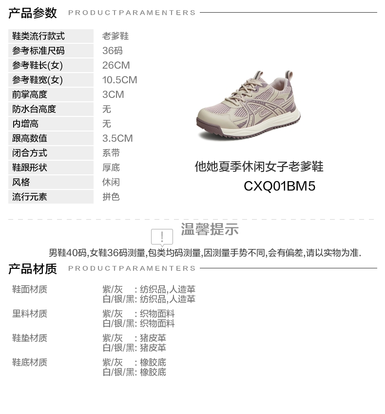 | 风格分类:老爹鞋 | 上市时间:2025年夏季 | 生产/经销/进口厂家:丽荣鞋业(深圳)有限公司 | 鞋类流行款式:老爹鞋 | 鞋头款式:圆头 |