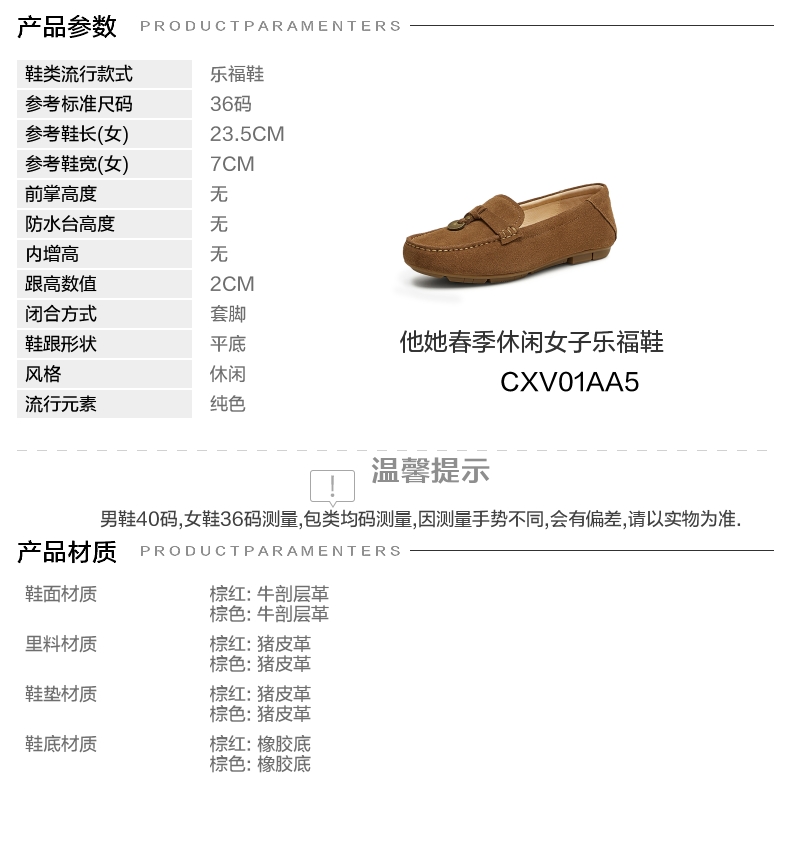 色系:棕色 参考标准尺码:36码 跟高数值:2CM 性别:女子 里料材质:猪皮革