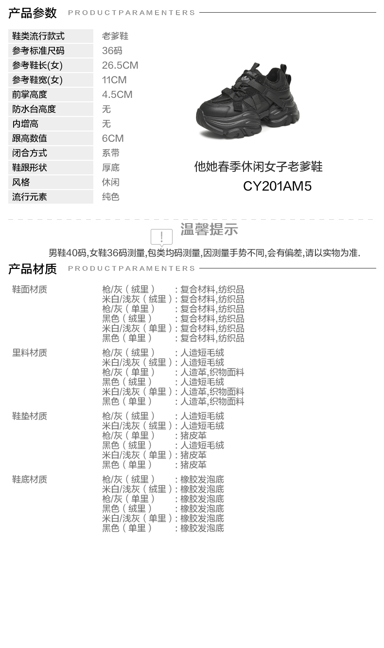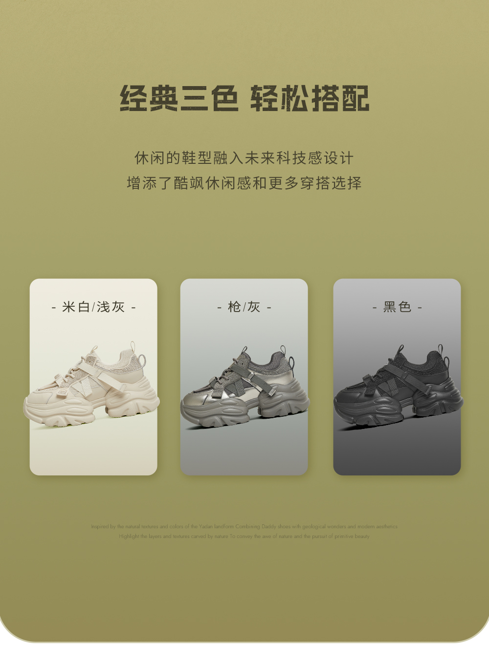 | 风格分类:老爹鞋 | 上市时间:2025年春季 | 生产/经销/进口厂家:丽荣鞋业(深圳)有限公司 | 鞋类流行款式:老爹鞋 | 鞋头款式:圆头 |