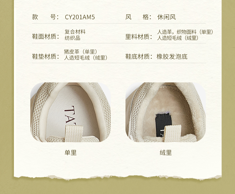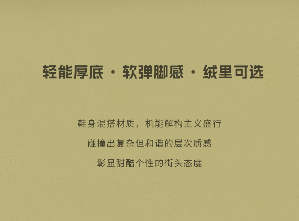 | 鞋帮:低帮 | 功能科技:无 | 鞋底材质:橡胶发泡底 | 内增高:无 | 鞋面材质:纺织品复合材料 |