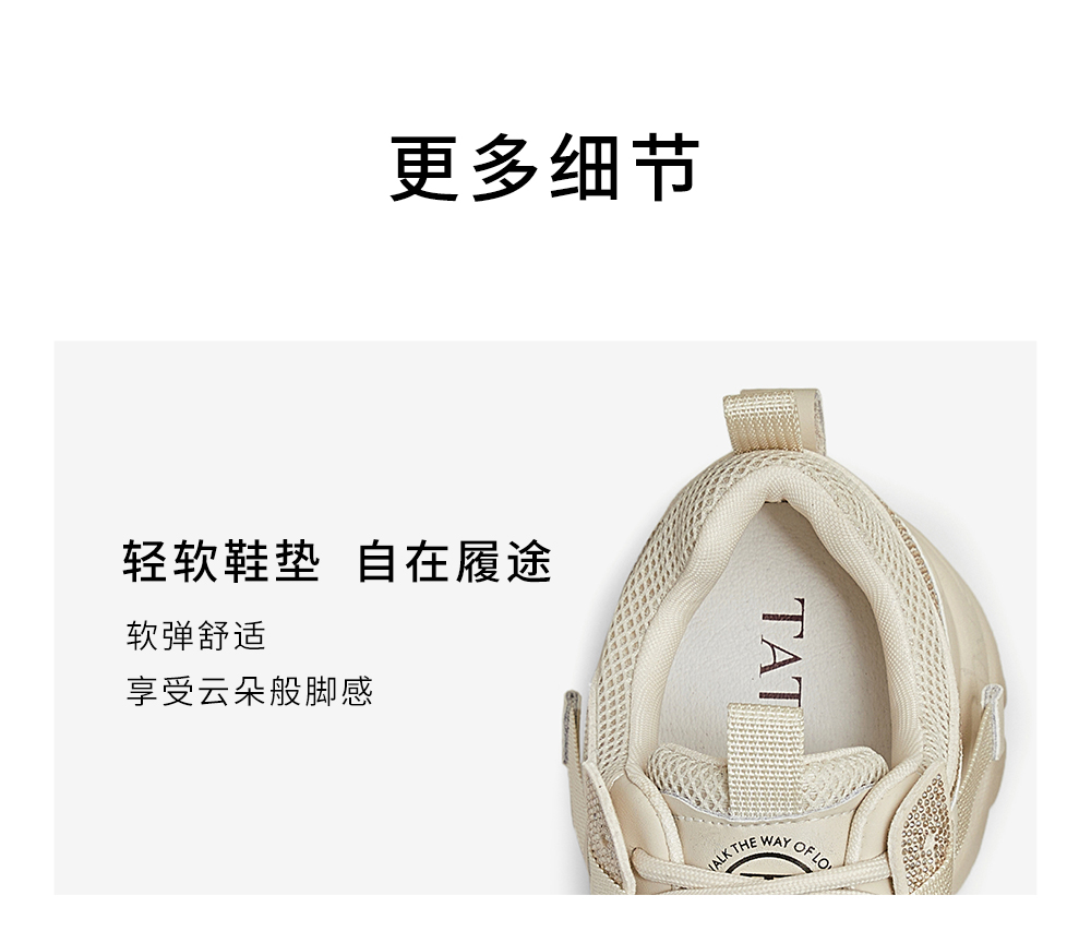他她(Tata),品牌成立于2003年,致力为都市年轻人群提供时尚潮流、具有性价比的鞋履产品。十五年来“踏踏”的着地声,寓意都市白领元气满满的生活,如时尚“伴履”的TATA一直陪伴左右、伴随走出TATA的时尚步伐。2017年TATA美丽蜕变,TATA STAR元素的加入预示品牌将成为闪亮、前端的时尚鞋履品牌。