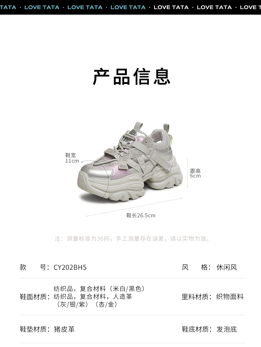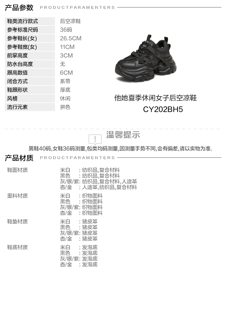 | 鞋头款式:圆头 | 鞋底材质:发泡底 | 鞋面图案:拼色 | 鞋跟形状:厚底 | 鞋面材质:纺织品复合材料 |