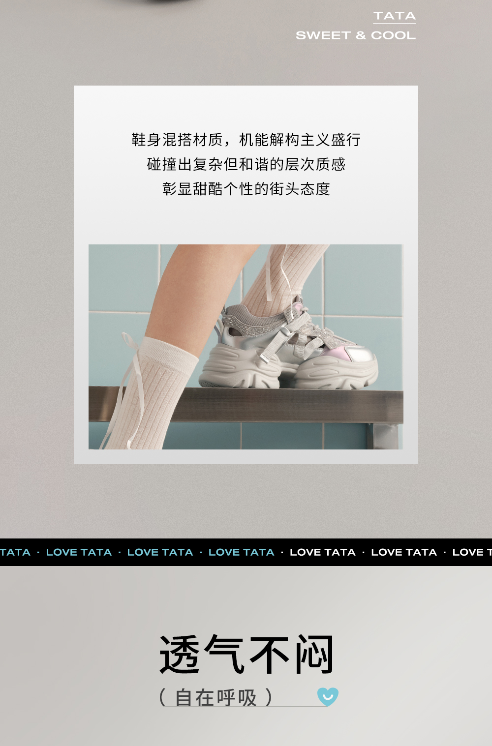 他她(Tata),品牌成立于2003年,致力为都市年轻人群提供时尚潮流、具有性价比的鞋履产品。十五年来“踏踏”的着地声,寓意都市白领元气满满的生活,如时尚“伴履”的TATA一直陪伴左右、伴随走出TATA的时尚步伐。2017年TATA美丽蜕变,TATA STAR元素的加入预示品牌将成为闪亮、前端的时尚鞋履品牌。