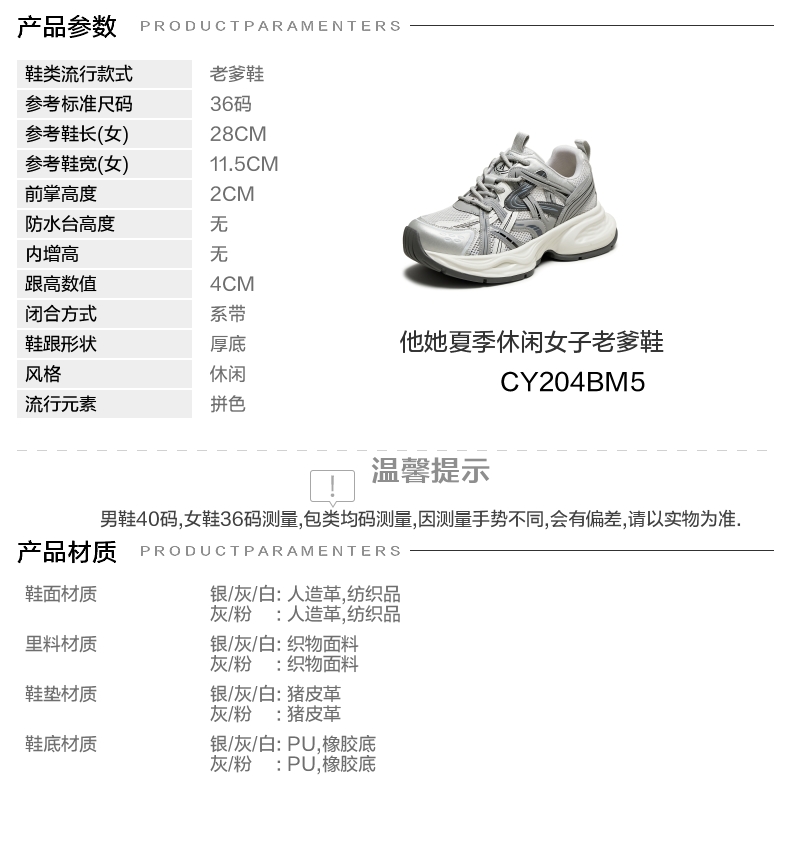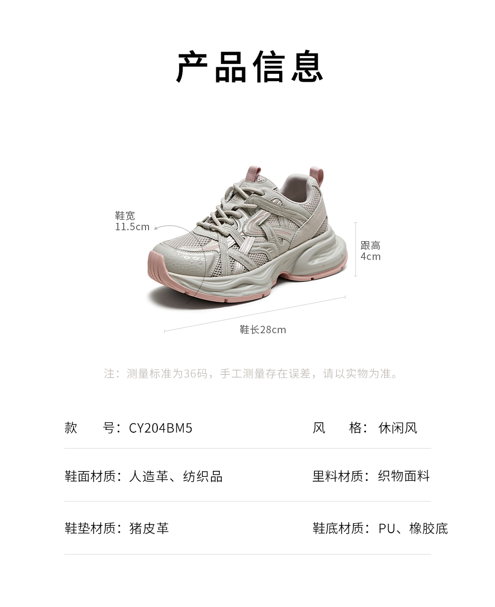 | 配跟:无 | 上市时间:2025年夏季 | 鞋类流行款式:老爹鞋 | 鞋头款式:圆头 | 鞋面图案:拼色 |