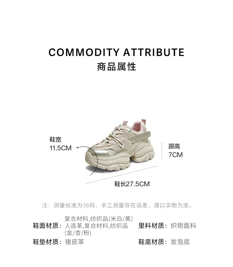 | 配跟:无 | 上市时间:2025年秋季 | 鞋类流行款式:老爹鞋 | 鞋头款式:圆头 | 鞋面图案:拼色 |