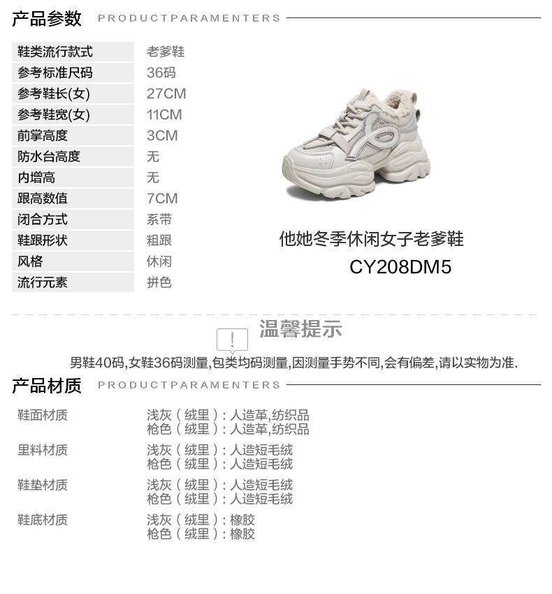 | 配跟:有 | 上市时间:2025年冬季 | 鞋类流行款式:老爹鞋 | 鞋头款式:圆头 | 鞋面图案:拼色 |