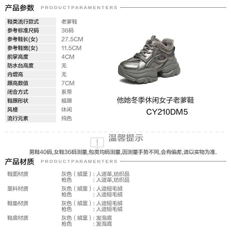 | 配跟:无 | 上市时间:2025年冬季 | 鞋类流行款式:老爹鞋 | 鞋头款式:圆头 | 鞋面图案:纯色 |