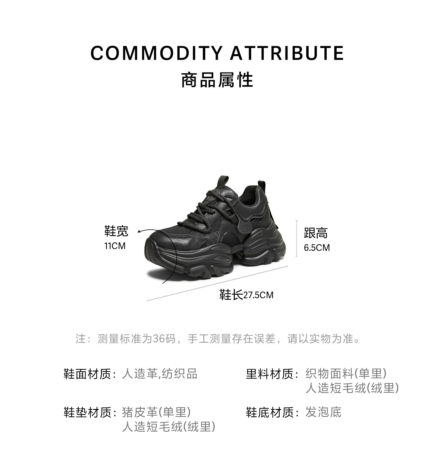 | 配跟:有 | 上市时间:2026年春季 | 鞋类流行款式:老爹鞋 | 鞋头款式:圆头 | 鞋面图案:纯色 |