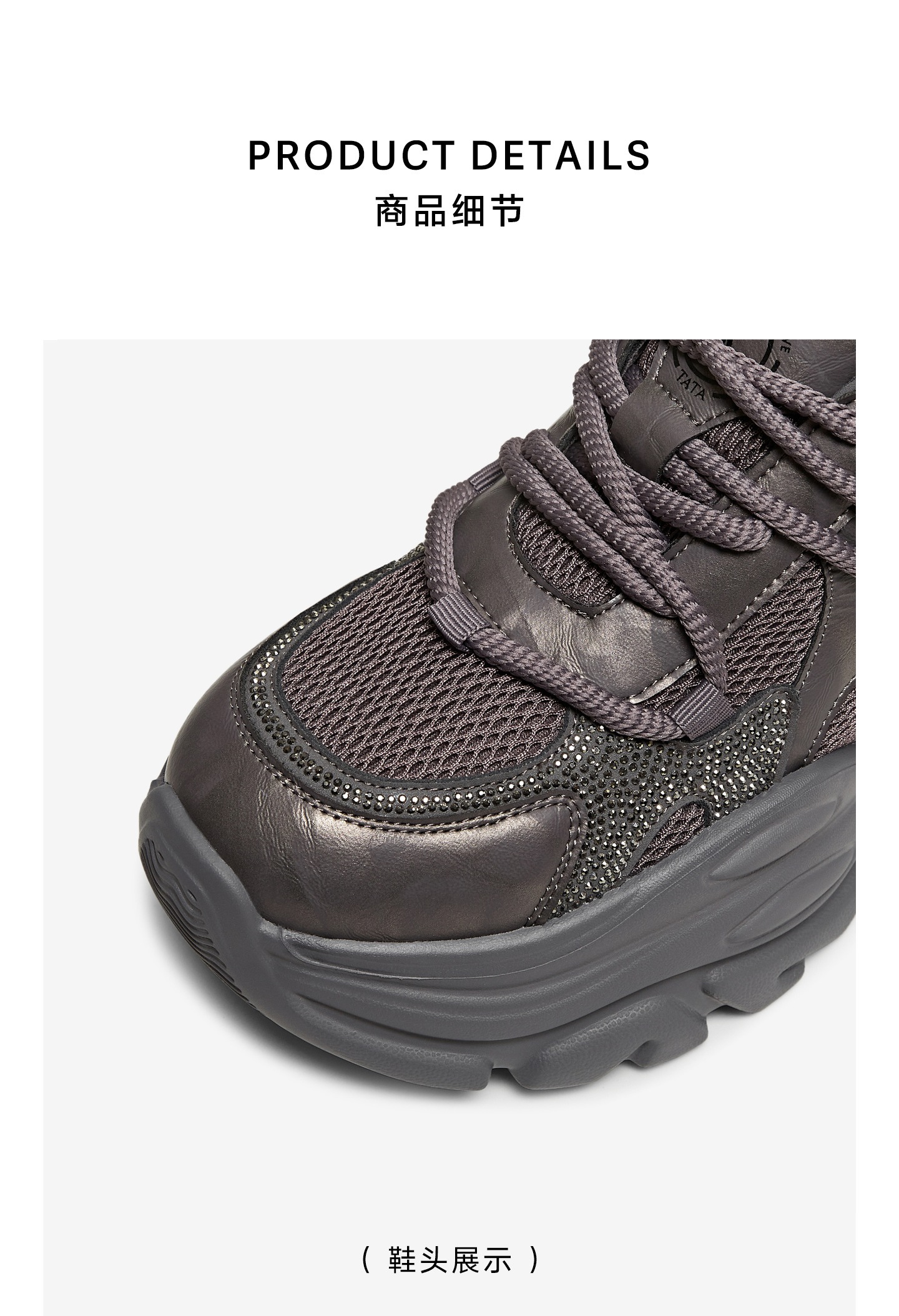 他她(Tata),品牌成立于2003年,致力为都市年轻人群提供时尚潮流、具有性价比的鞋履产品。十五年来“踏踏”的着地声,寓意都市白领元气满满的生活,如时尚“伴履”的TATA一直陪伴左右、伴随走出TATA的时尚步伐。2017年TATA美丽蜕变,TATA STAR元素的加入预示品牌将成为闪亮、前端的时尚鞋履品牌。