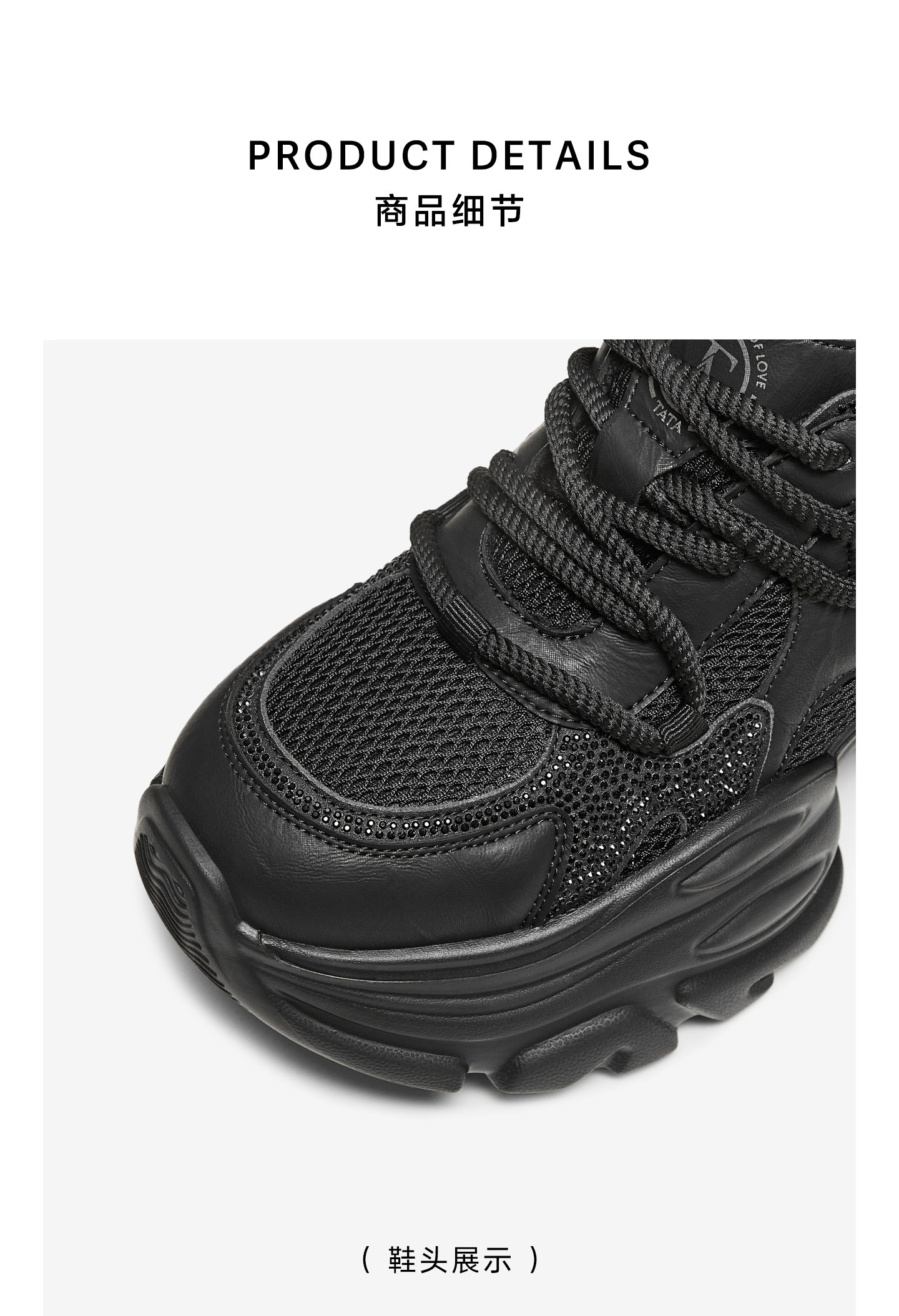 他她(Tata),品牌成立于2003年,致力为都市年轻人群提供时尚潮流、具有性价比的鞋履产品。十五年来“踏踏”的着地声,寓意都市白领元气满满的生活,如时尚“伴履”的TATA一直陪伴左右、伴随走出TATA的时尚步伐。2017年TATA美丽蜕变,TATA STAR元素的加入预示品牌将成为闪亮、前端的时尚鞋履品牌。