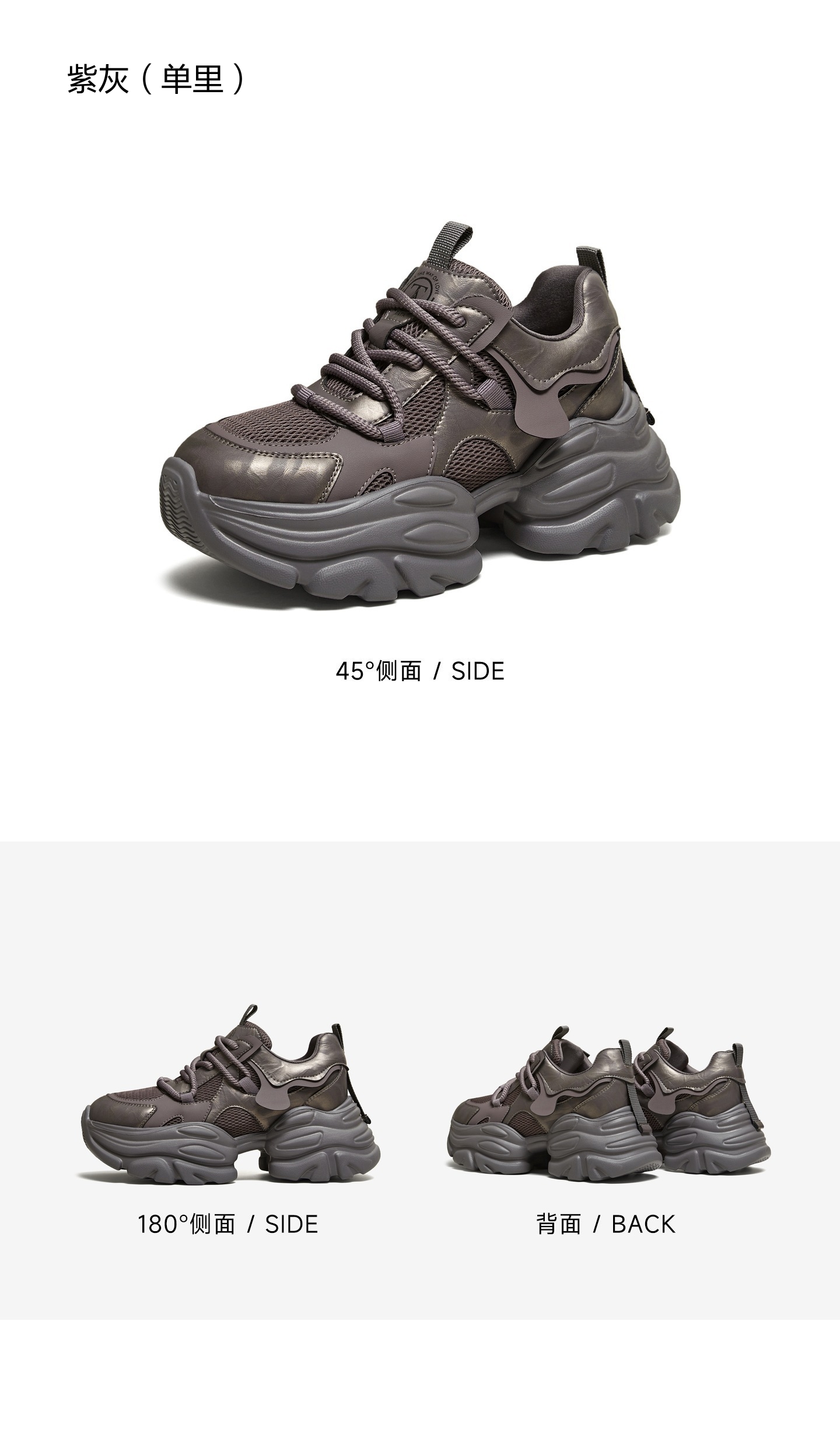 | 配跟:无 | 上市时间:2026年春季 | 鞋类流行款式:老爹鞋 | 鞋头款式:圆头 | 鞋面图案:纯色 |