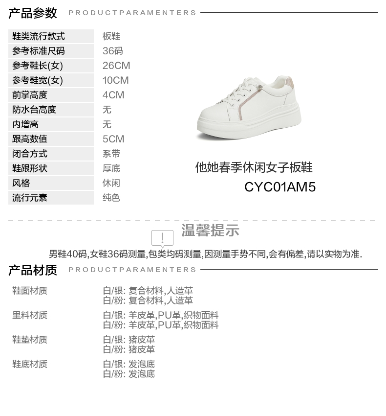 | 鞋帮:低帮 | 鞋底材质:发泡底 | 内增高:无 | 鞋面材质:复合材料人造革 | 适用场合:日常休闲 |