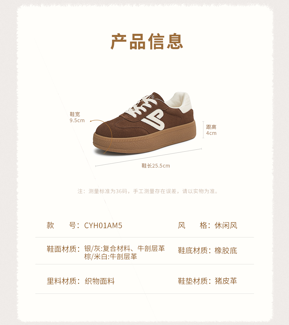 | 鞋帮:低帮 | 鞋底材质:橡胶底 | 内增高:无 | 鞋面材质:牛剖层革 | 适用场合:日常休闲 |