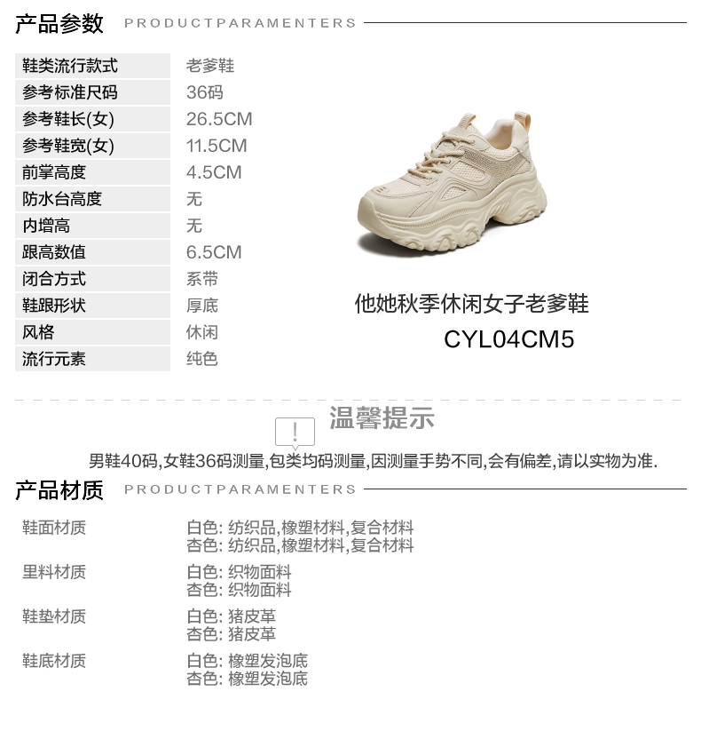 | 配跟:无 | 上市时间:2025年秋季 | 鞋类流行款式:老爹鞋 | 鞋头款式:圆头 | 鞋面图案:纯色 |