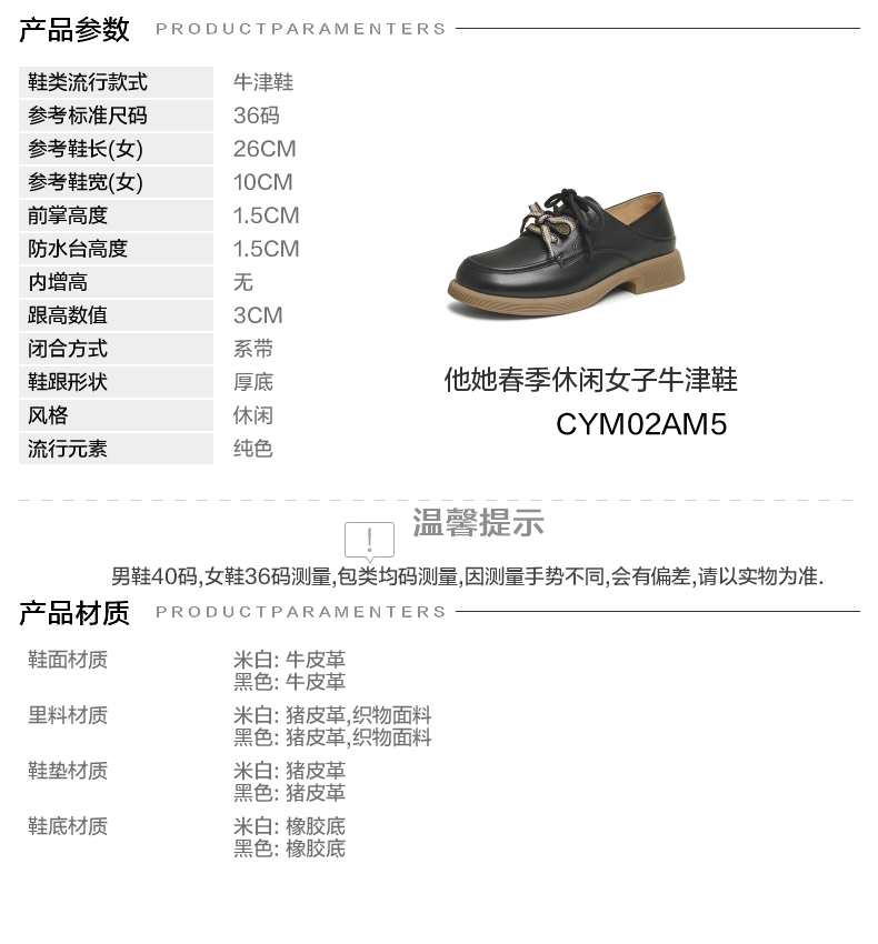• TATA/他她2025春商场同款时尚简约休闲女牛津鞋新款CYM02AM5