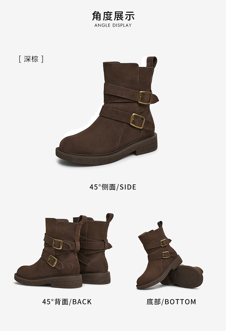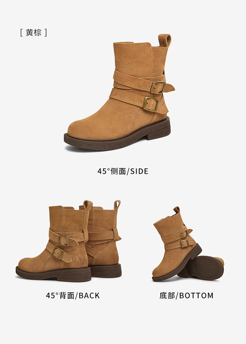 | 鞋底材质:橡胶底 | 靴筒内里材质:织物面料PU革 | 内增高:无 | 鞋面材质:牛剖层革 | 闭合方式:搭扣 |