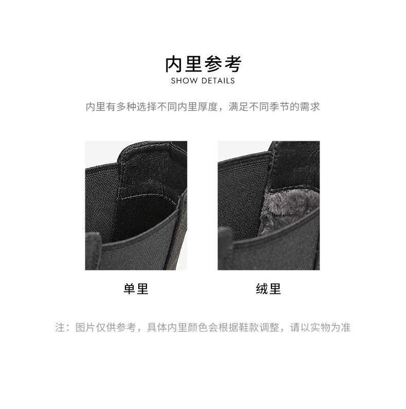 | 风格分类:切尔西靴 | 上市时间:2024年冬季 | 生产/经销/进口厂家:丽荣鞋业(深圳)有限公司 | 鞋类流行款式:切尔西靴 | 鞋头款式:圆头 |