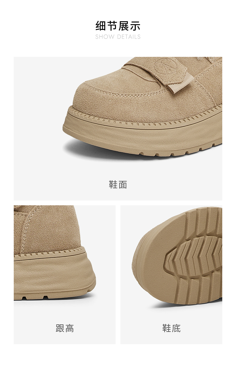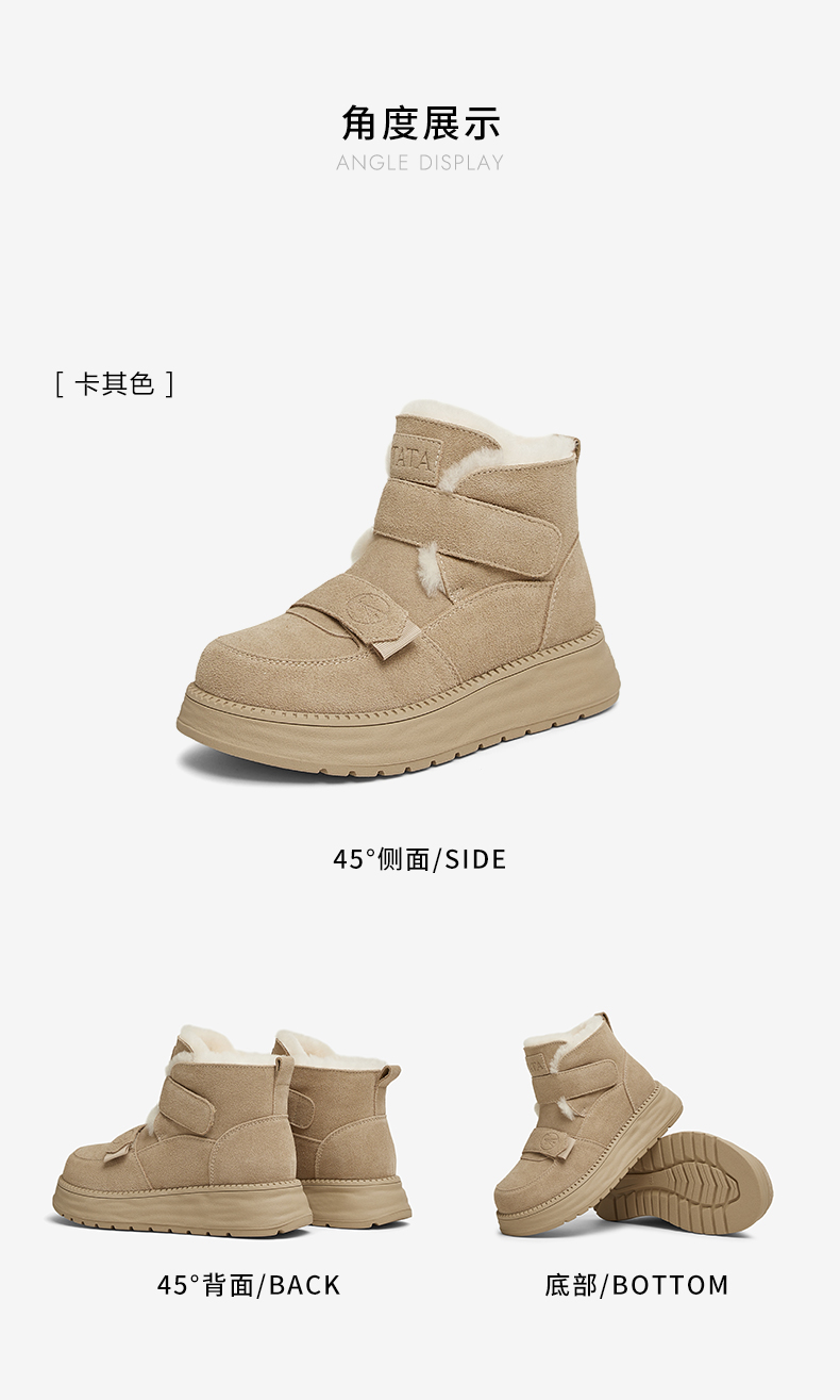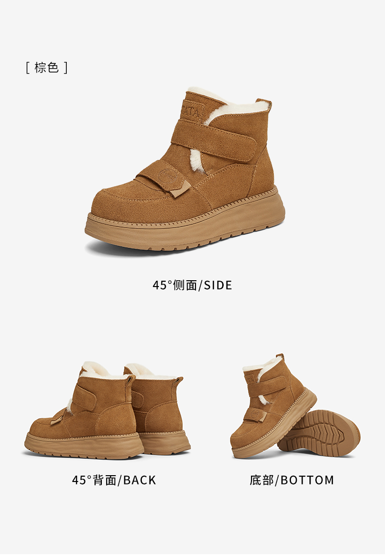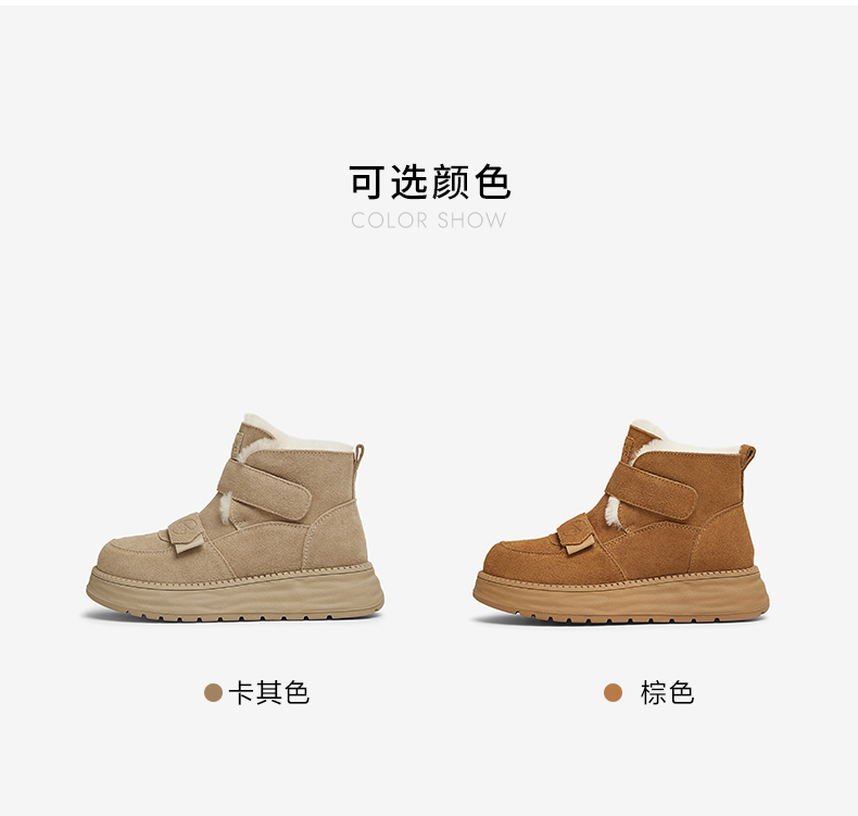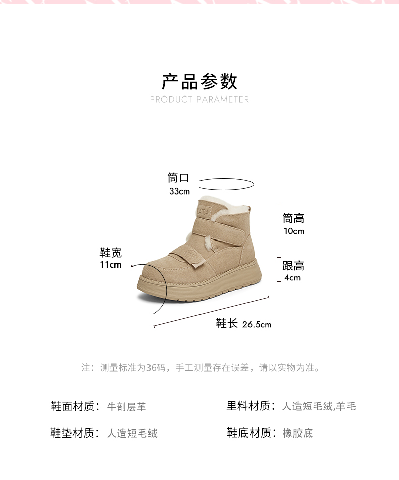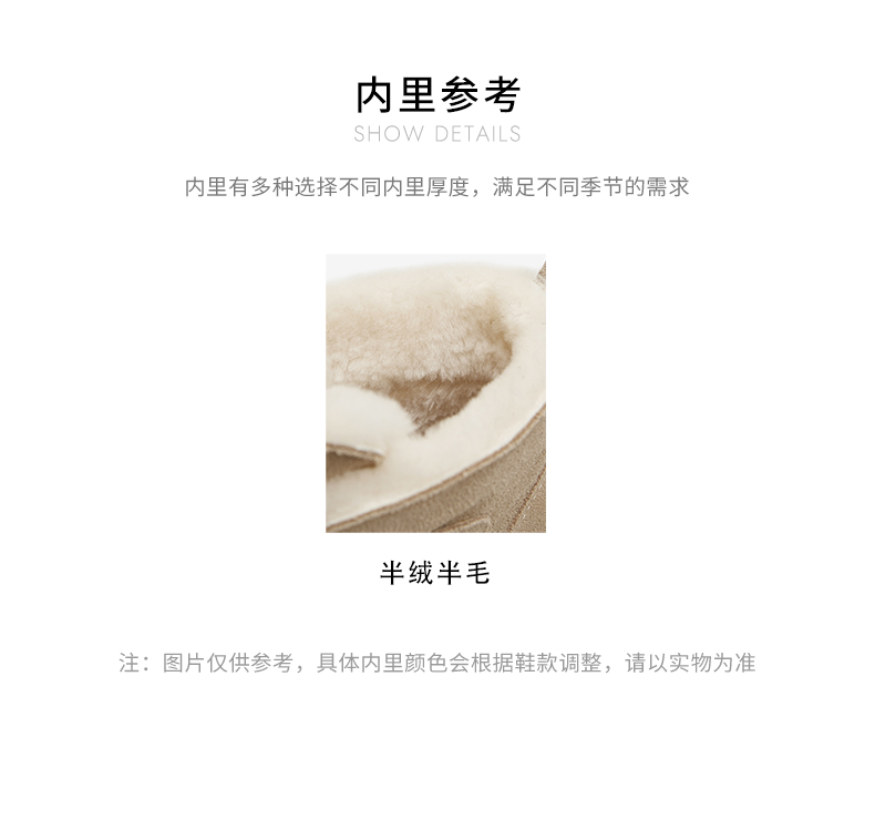 | 上市时间:2024年冬季 | 鞋类流行款式:雪地靴 | 鞋头款式:圆头 | 执行标准:舒适上班鞋Q/LR001-2023 | 跟高范围:中跟鞋(3-5CM) |