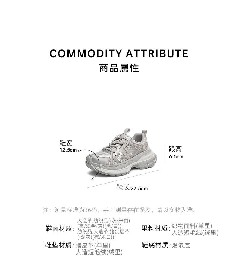 | 风格分类:老爹鞋 | 上市时间:2025年春季 | 生产/经销/进口厂家:丽荣鞋业(深圳)有限公司 | 鞋类流行款式:老爹鞋 | 鞋头款式:圆头 |
