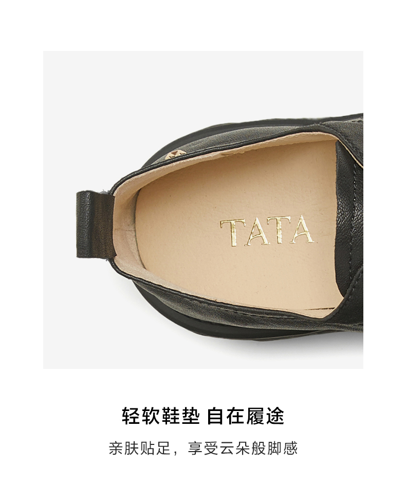 他她(Tata),品牌成立于2003年,致力为都市年轻人群提供时尚潮流、具有性价比的鞋履产品。十五年来“踏踏”的着地声,寓意都市白领元气满满的生活,如时尚“伴履”的TATA一直陪伴左右、伴随走出TATA的时尚步伐。2017年TATA美丽蜕变,TATA STAR元素的加入预示品牌将成为闪亮、前端的时尚鞋履品牌。