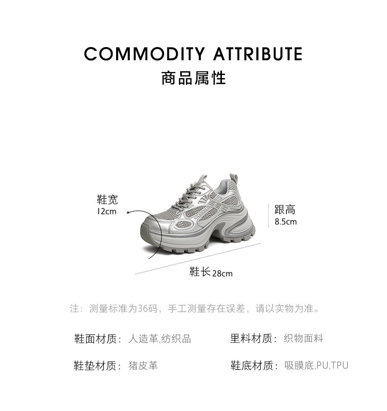 | 上市时间:2025年春季 | 生产/经销/进口厂家:丽荣鞋业(深圳)有限公司 | 鞋类流行款式:老爹鞋 | 鞋头款式:圆头 | 执行标准:舒适运动鞋Q/LR002-2023 |