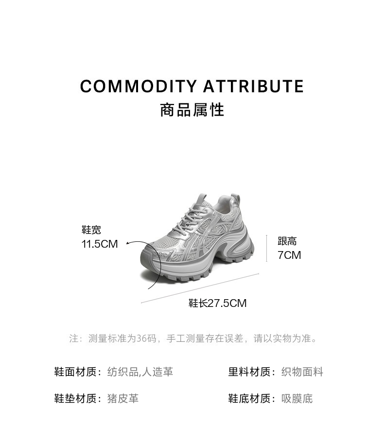 | 鞋跟形状:厚底 | 参考鞋长(女):27.5CM | 流行元素:拼色 | 参考鞋宽(女):11.5CM | 风格:休闲 |