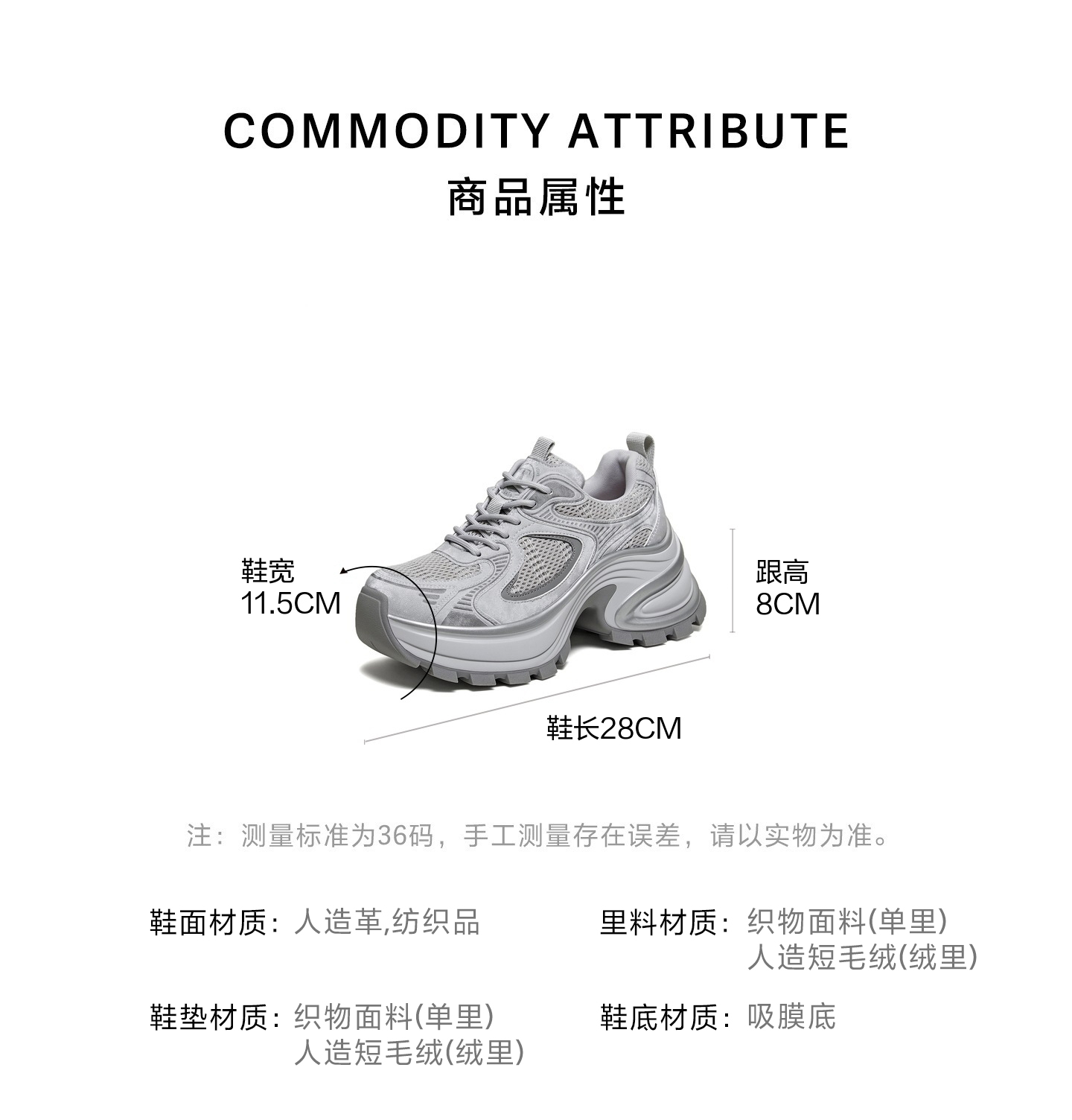| 配跟:有 | 上市时间:2026年春季 | 鞋类流行款式:老爹鞋 | 鞋头款式:圆头 | 鞋面图案:纯色 |