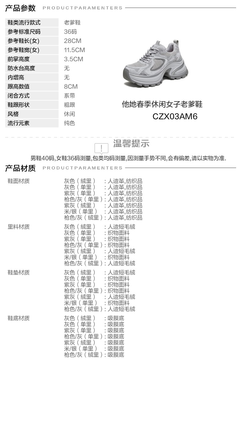 | 配跟:有 | 上市时间:2026年春季 | 鞋类流行款式:老爹鞋 | 鞋头款式:圆头 | 鞋面图案:纯色 |