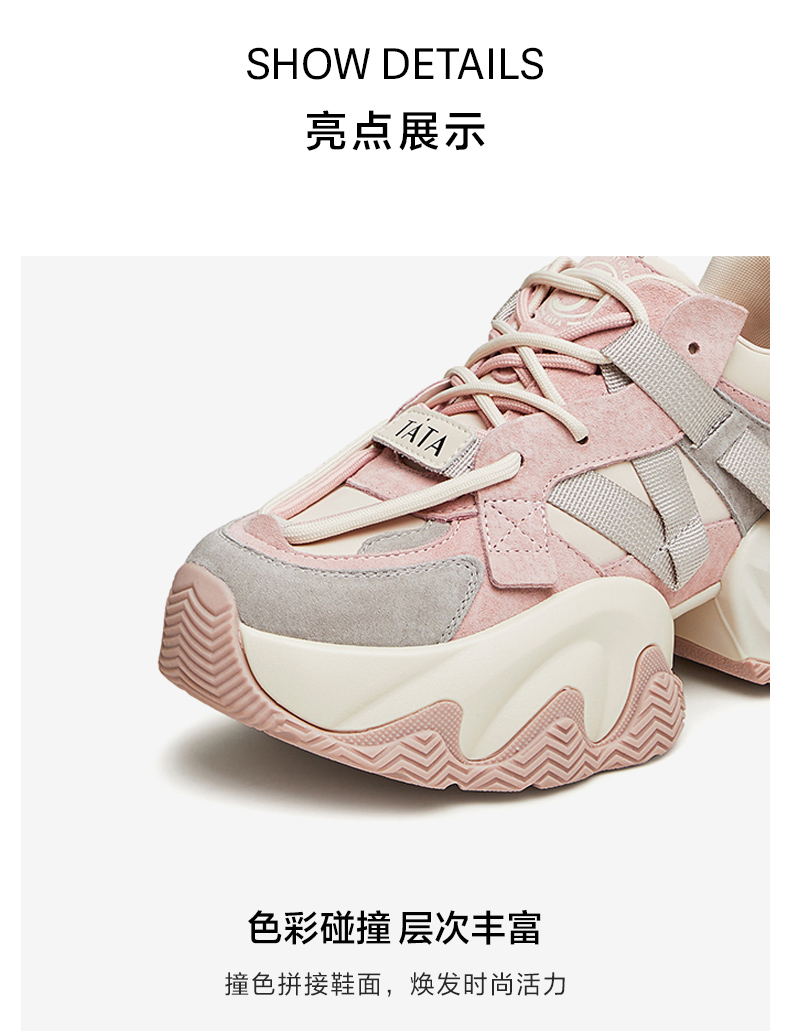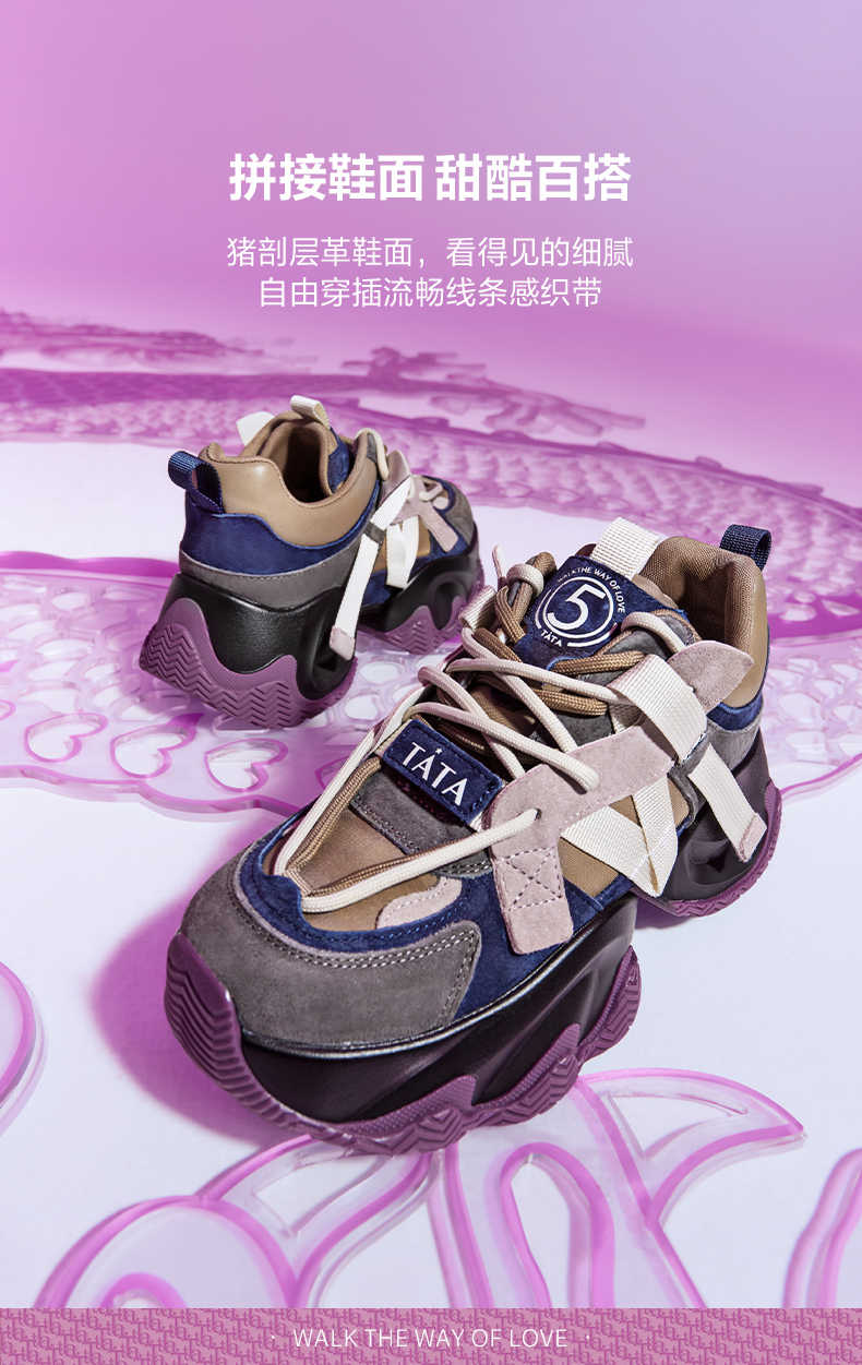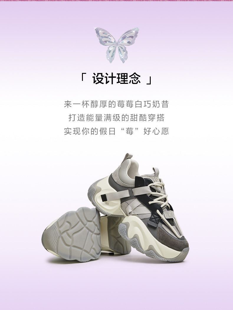 | 上市时间:2024年春季 | 生产/经销/进口厂家:丽荣鞋业(深圳)有限公司 | 鞋类流行款式:老爹鞋 | 鞋头款式:圆头 | 执行标准:舒适运动鞋Q/LR002-2023 |
