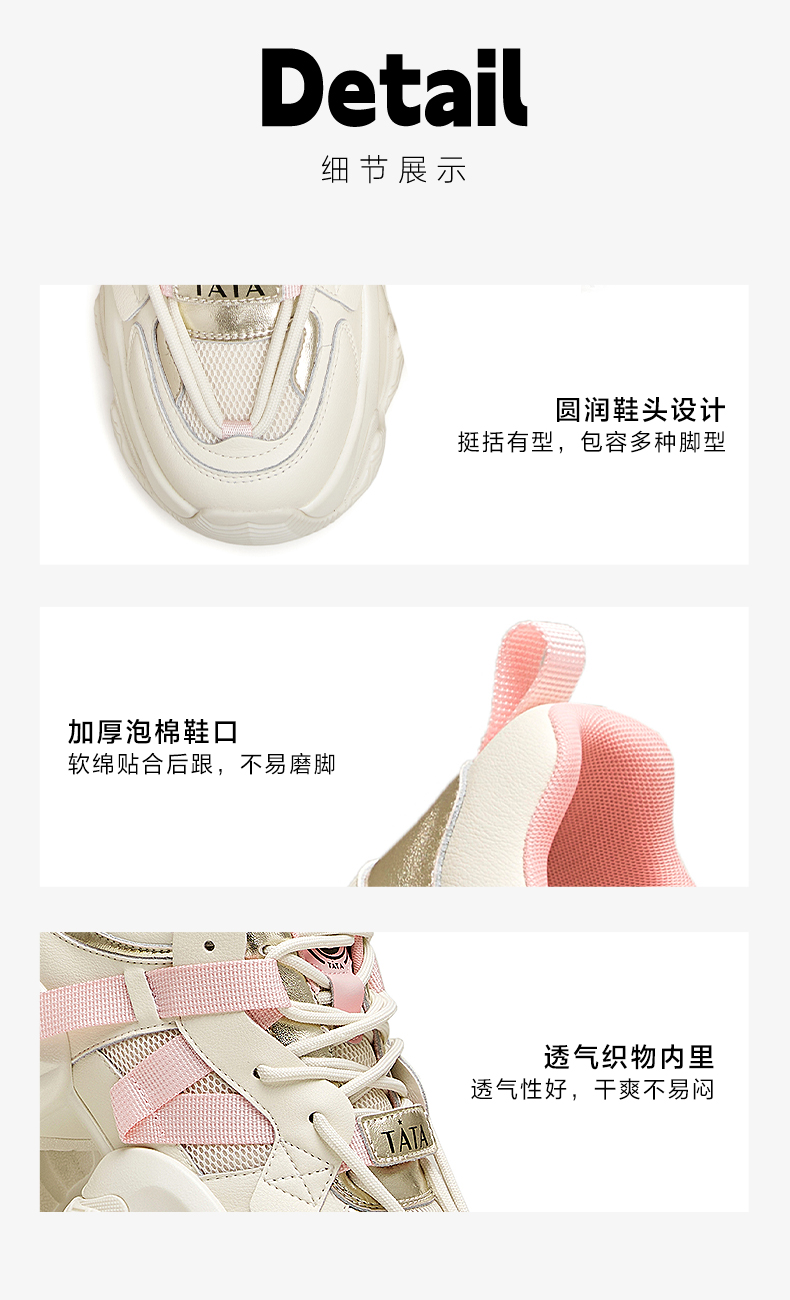| 闭合方式:前系带 | 所在区域:电子商务 | 配跟:有 | 开口深度:深口 | 风格分类:老爹鞋 |
