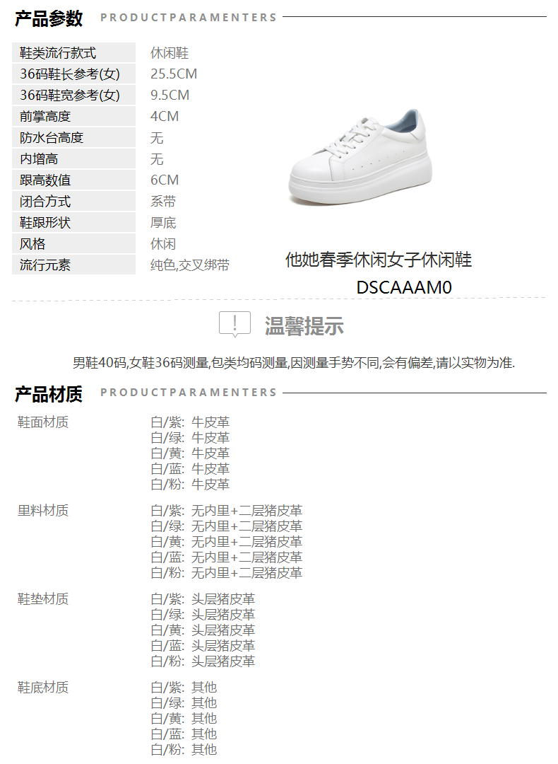 | 风格:休闲 | 跟高数值:6CM | 色系:白色 | 货品来源:外购 | 配跟:无 |