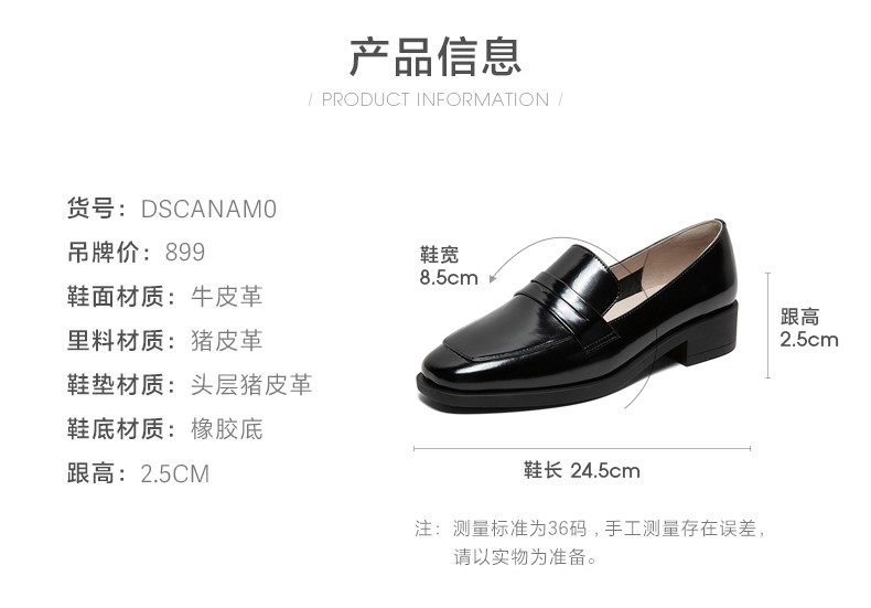 | 鞋头款式:方头 | 跟高范围:低跟鞋(小于3CM) | 鞋面图案:纯色 | 鞋跟形状:方跟 | 参考鞋长(女):24.5CM |