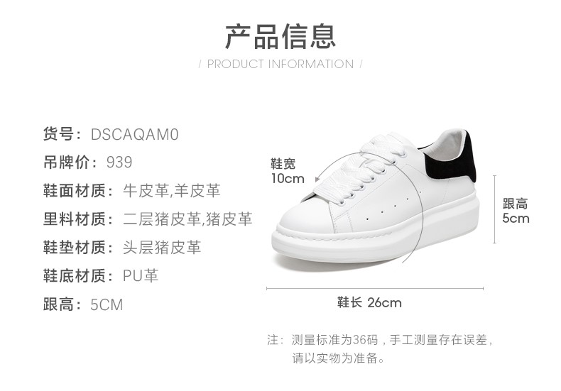 | 皮质特征:软面皮 | 前掌高度:3.5CM | 防水台高度:无 | 鞋类流行款式:小白鞋 |