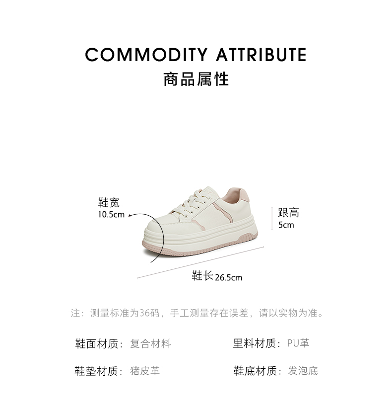 | 鞋跟形状:厚底 | 参考鞋长(女):26.5CM | 流行元素:拼色 | 参考鞋宽(女):10.5CM | 风格:休闲 |